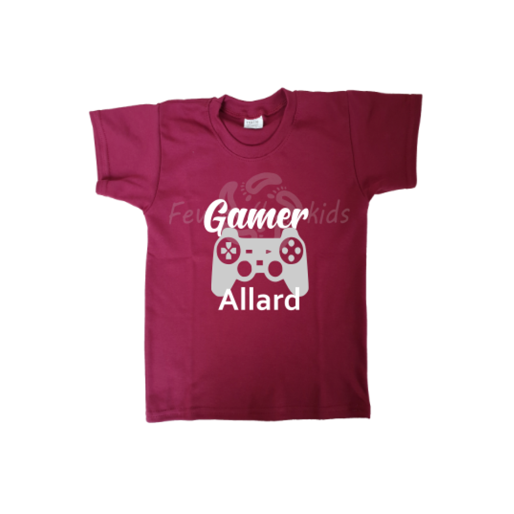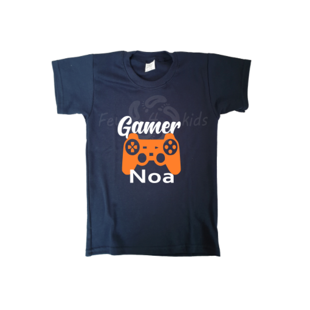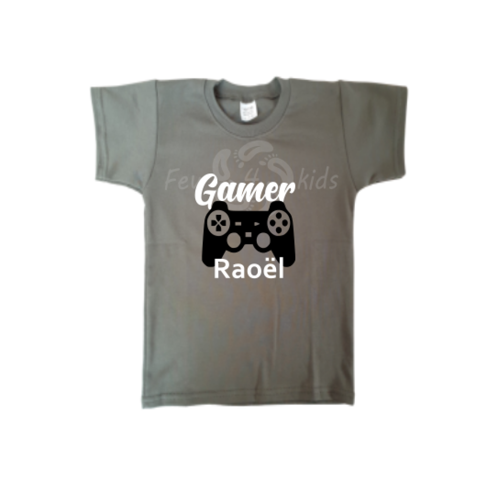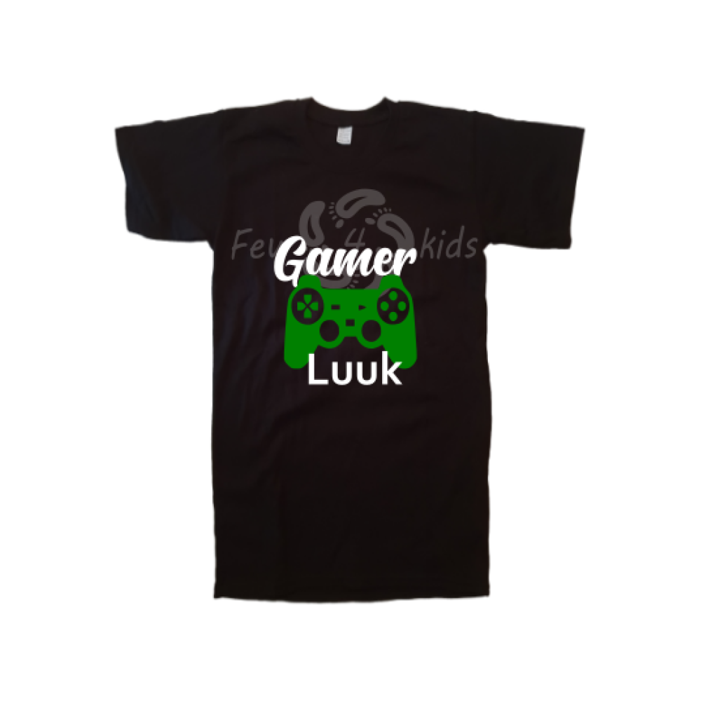 Een gamer shirt van Few4kids met de naam van jouw kind, hoe leuk is dat!