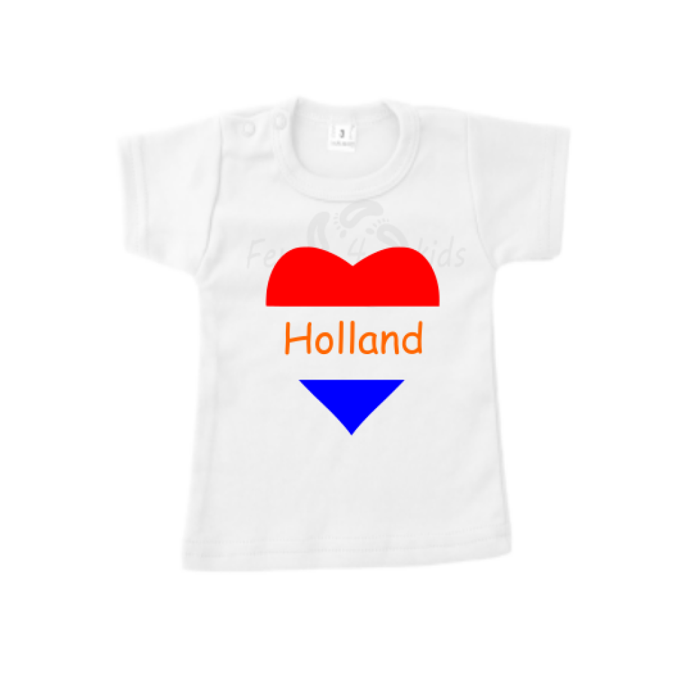 Shirt met opdruk Holland in een hart met de Nederlandse vlag kleuren.