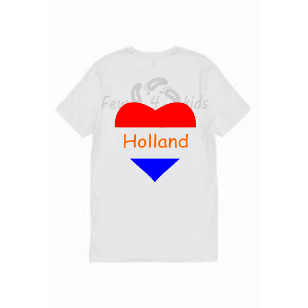 Shirt met opdruk Holland in een hart met de Nederlandse vlag kleuren.