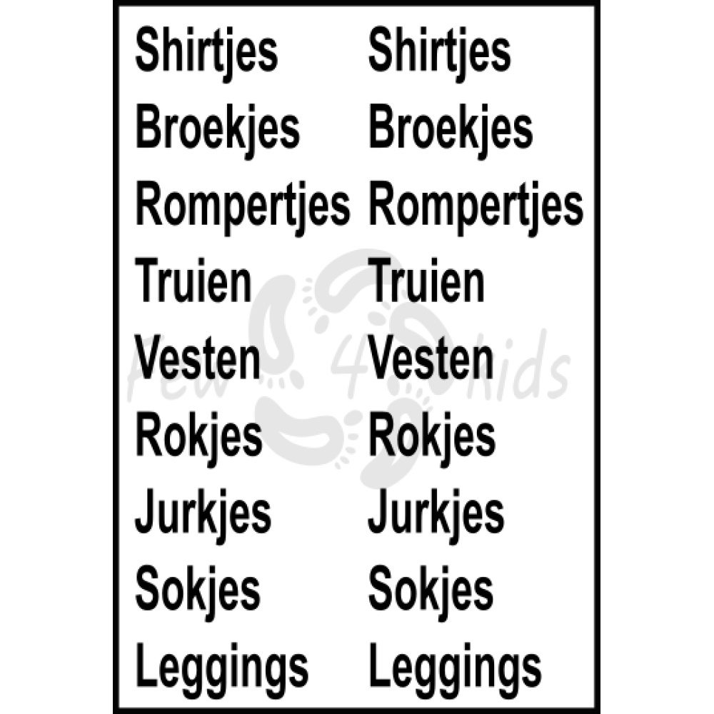 Niks is fijner om dan de kledingstukken bij elkaar en per maat op te ruimen en dit duidelijk te voorzien aan de buitenkant van de opbergbakken.