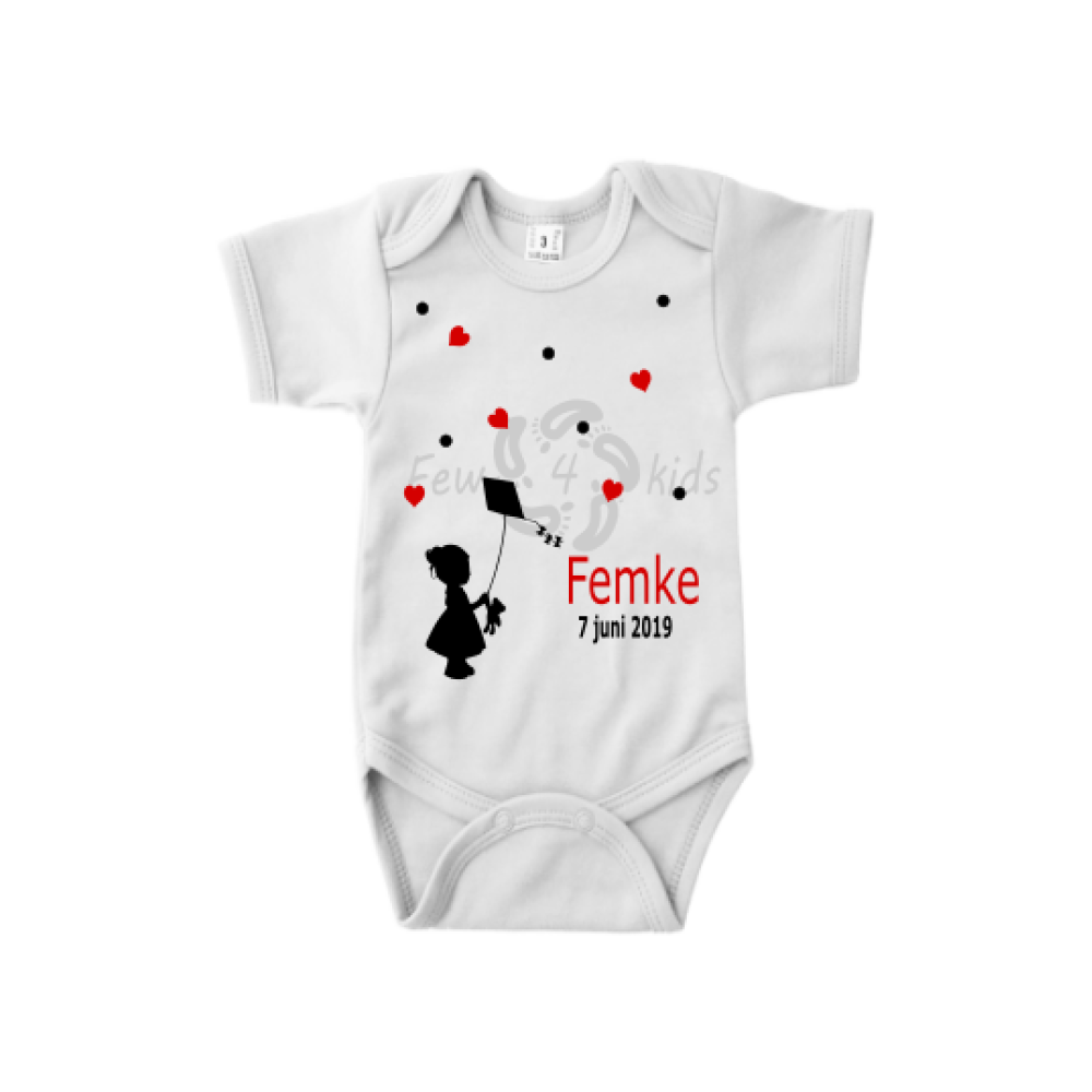 Trendy en uniek romper van Few4kids met de opdruk een meisje met vlieger.