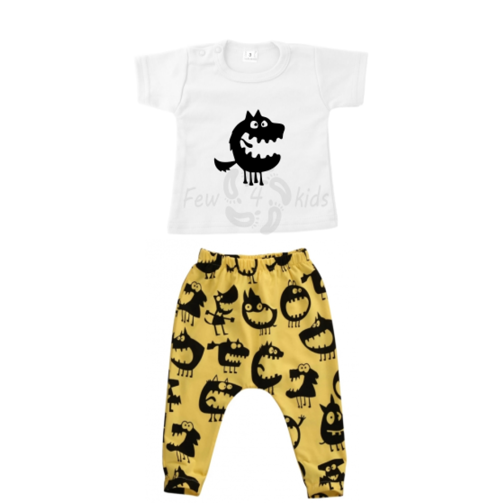 Trendy en stoer monster kledingsetje voor jongens bestaande uit een broekje en een shirtje.