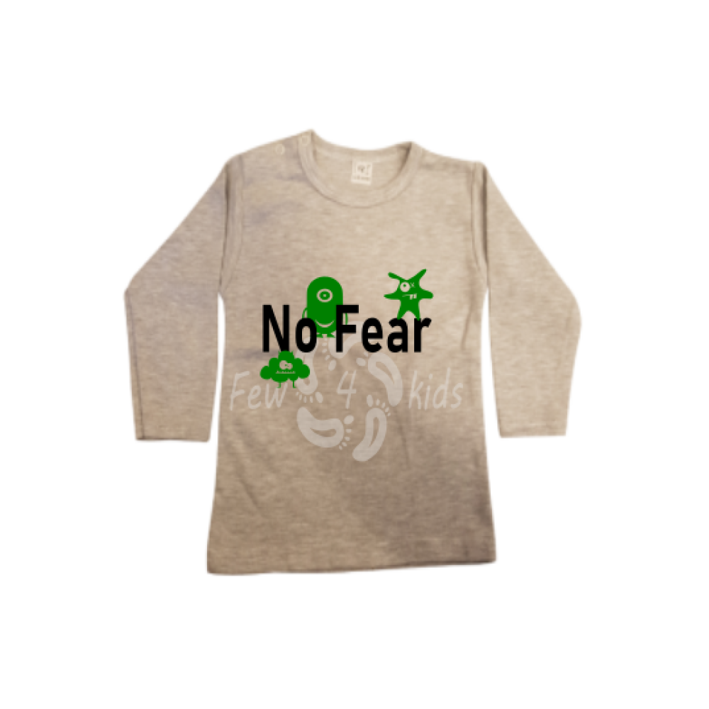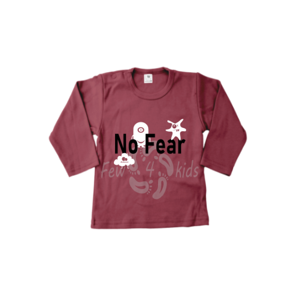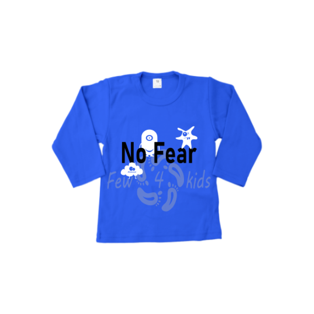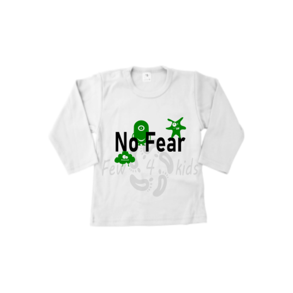Stoer en grappig shirt met de opdruk No Fear en kleine monstertjes.