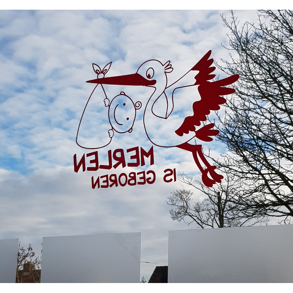 Wil je de geboorte van je kindje op een leuke manier aankondigen? Dan is deze (raam)sticker met de tekst "is geboren met ooievaar en naam van je kindje de juiste keuze.