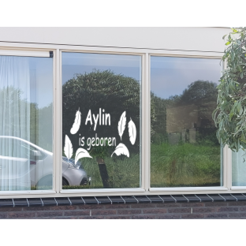Wil je de geboorte van je kindje op een leuke manier aankondigen? Dan is deze (raam)sticker met veren de juiste keuze.