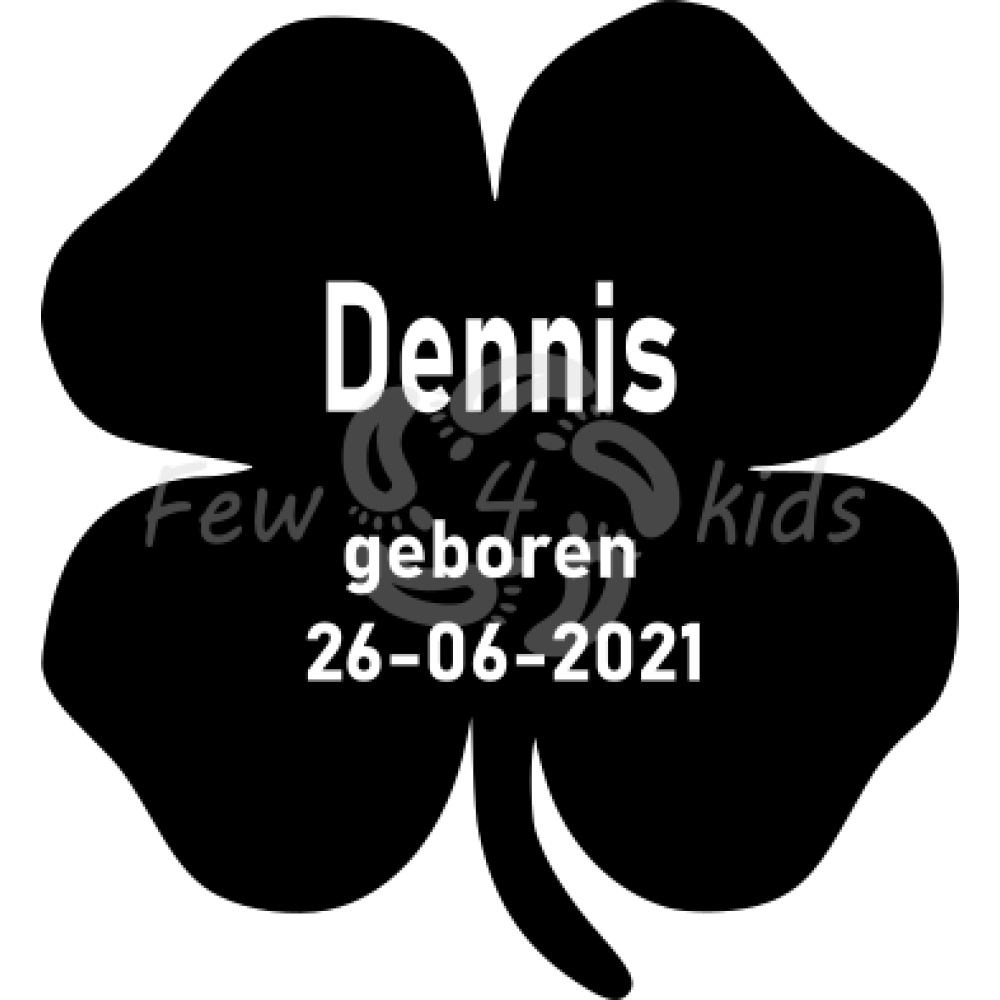 Door het klavertje 4 met eigen naam en geboortedatum maakt deze (raam)sticker uniek.