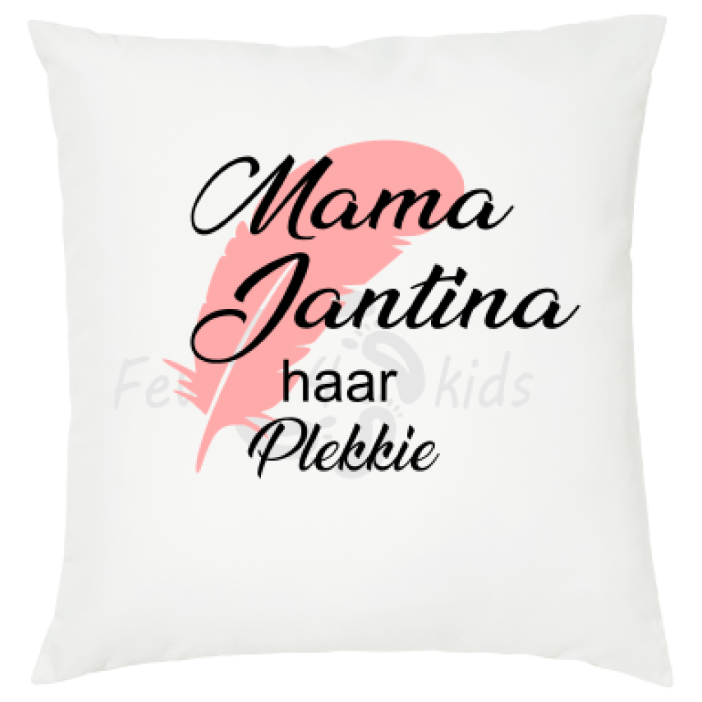 Sierkussen word geleverd in het wit zoals op de foto met opdruk Mama ... haar plekkie.