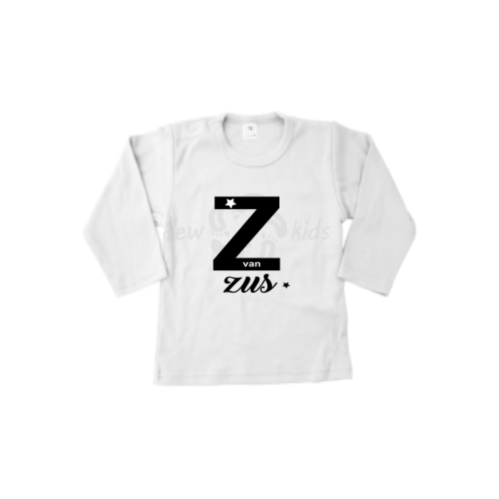 Het shirt is in het Nederlands met de opdruk Z van zus.